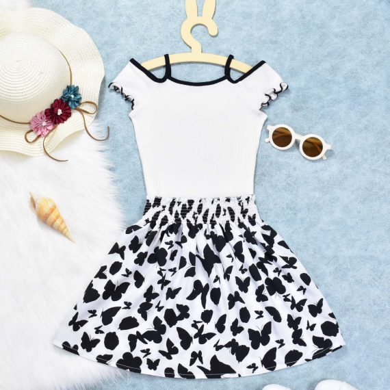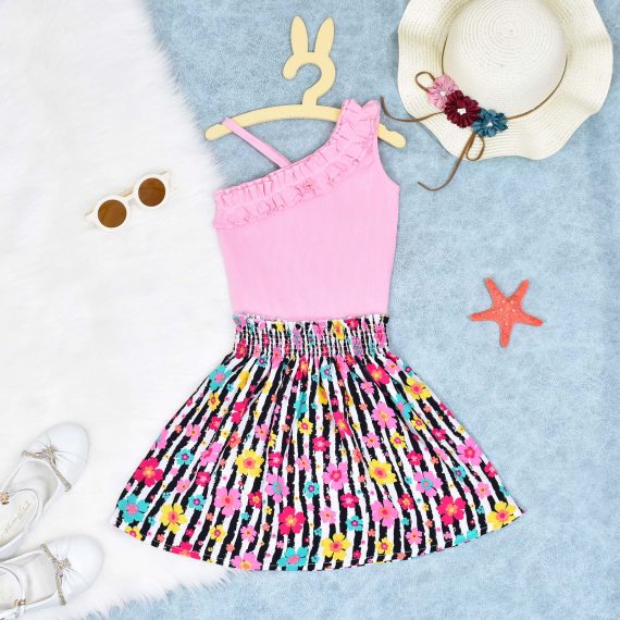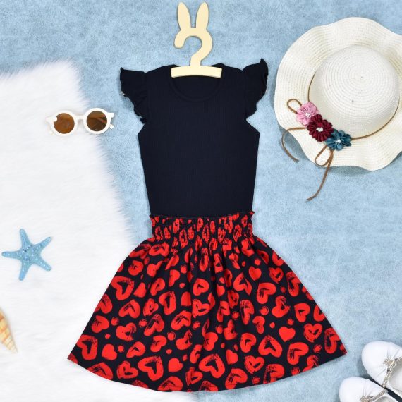 ست تاپ و دامن دخترانه دل آویز مدل T377