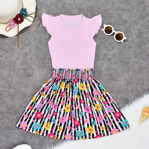 ست تاپ و دامن دخترانه دل آویز مدل T384
