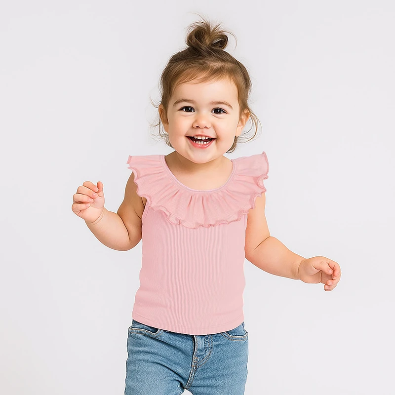تاپ تریکو یقه برگردان چین دار به رنگ گلبهی |