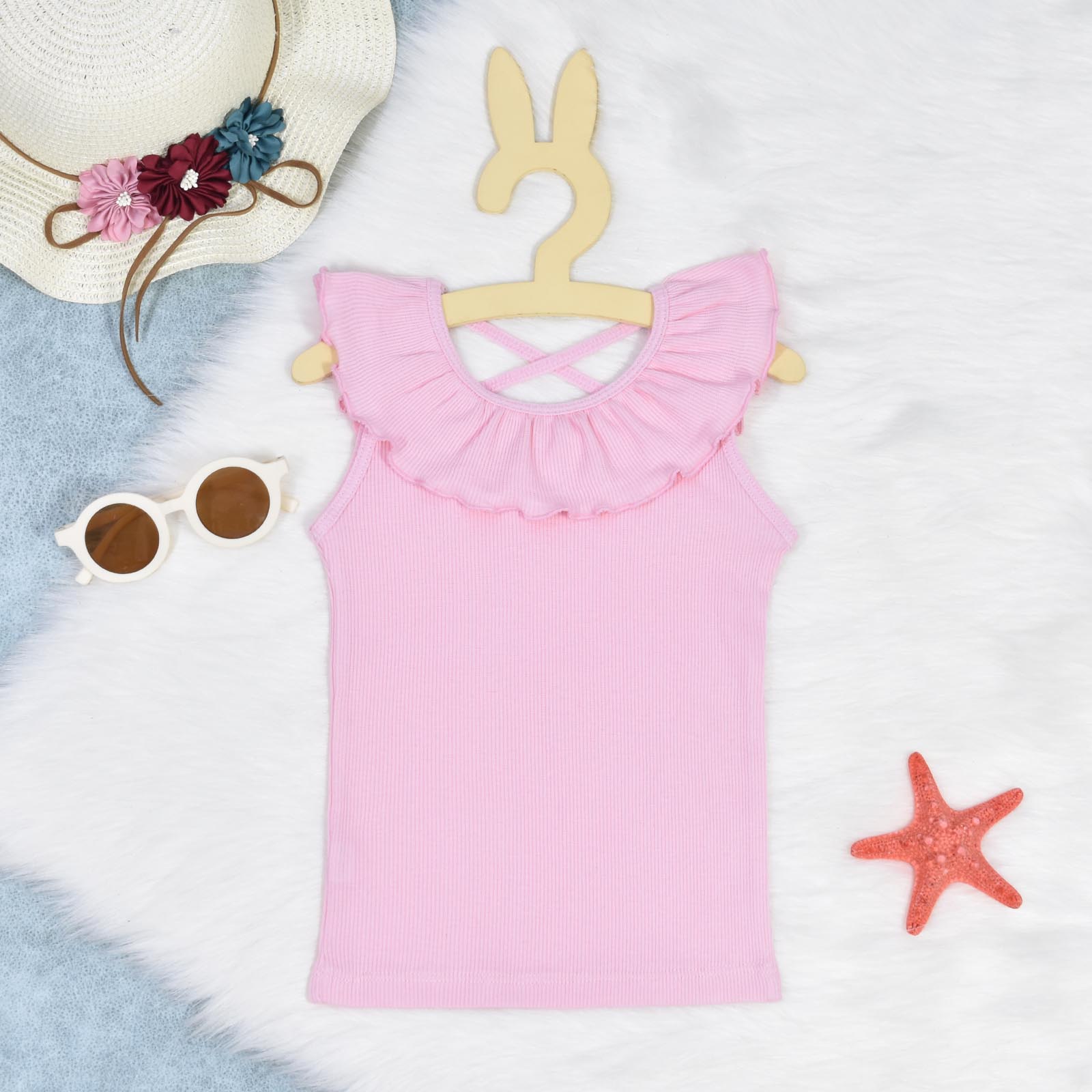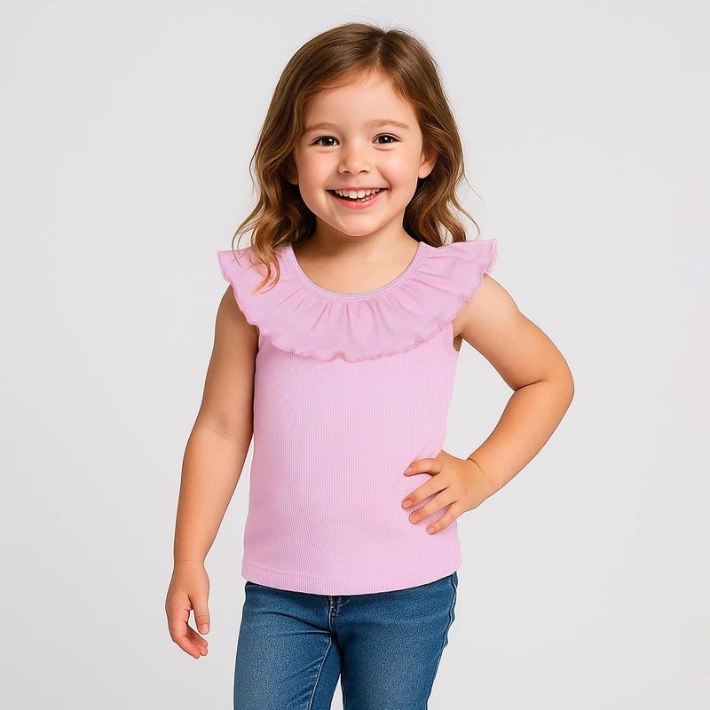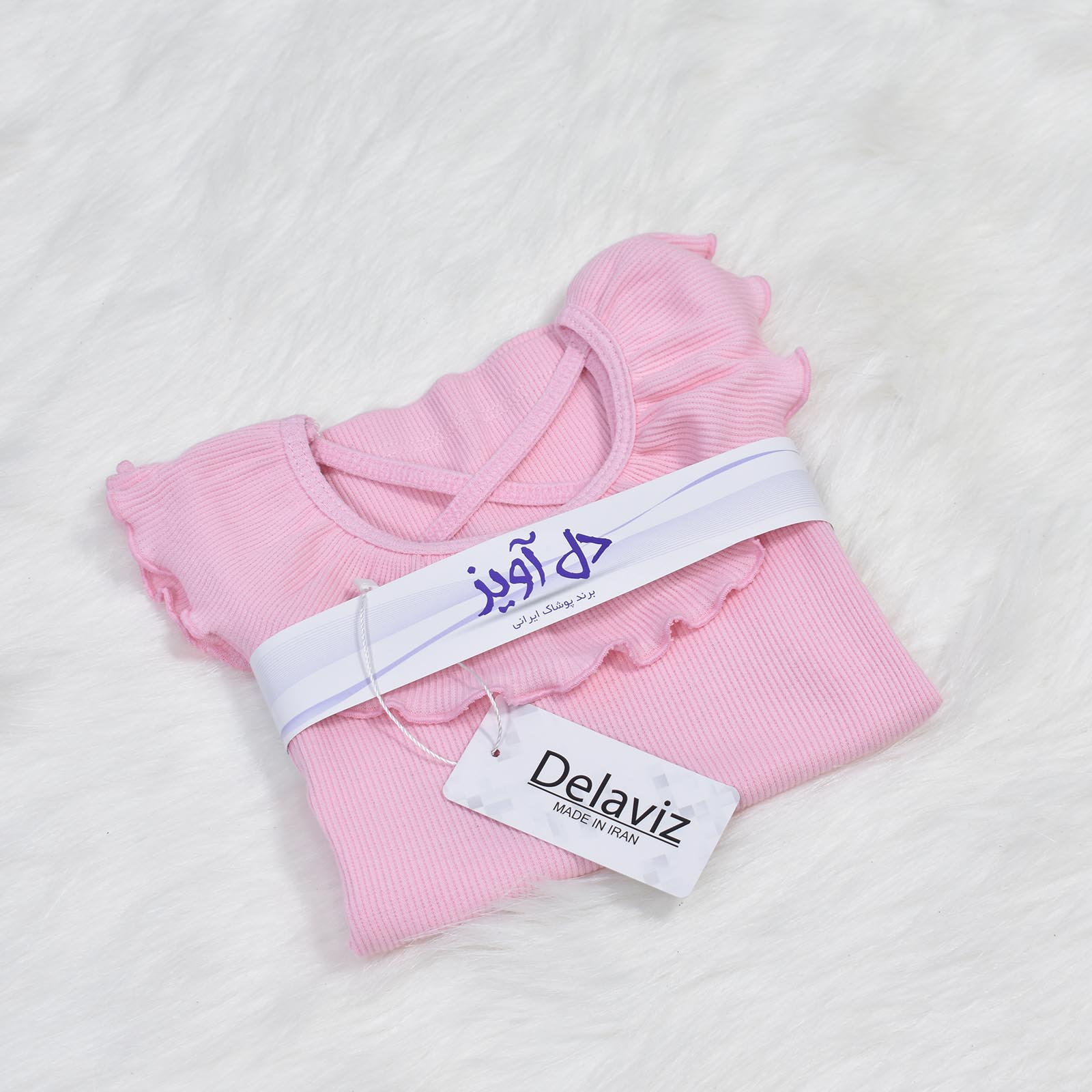 تاپ دخترانه با طرح یقه برگردان با رنگ صورتی |